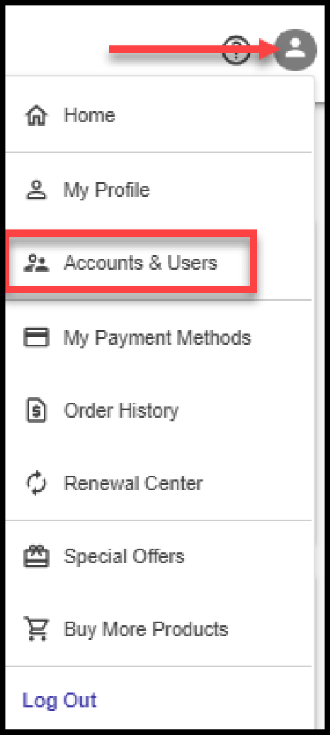 Login to your Bluehost Account Manager. Click the profile icon in the top right corner of your page and select the Accounts & Users option from the drop-down menu that appears. See image below