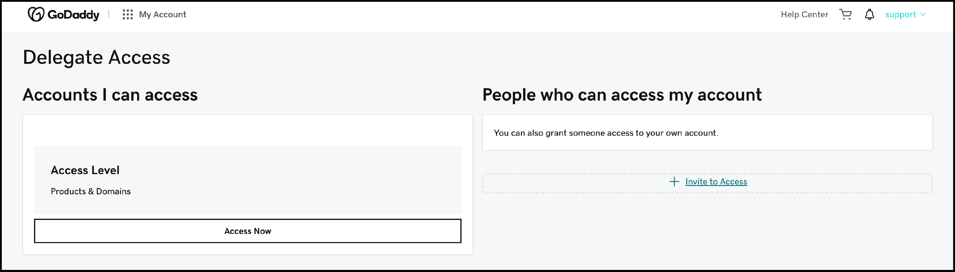 Go to your GoDaddy Delegate Access page. You might be prompted to sign in. It should look like the image below.